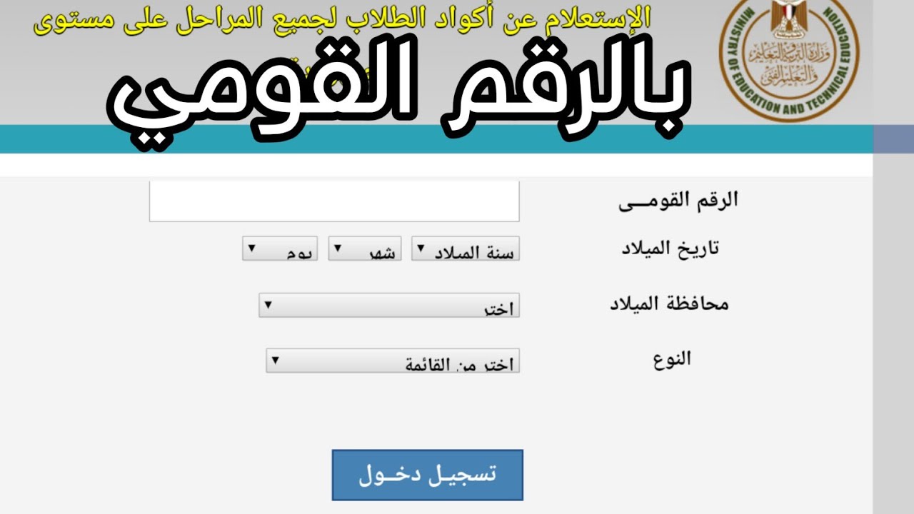 “من هنــا” خطوات استخراج كود الطالب بالرقم القومي 2023 من موقع وزارة التربية والتعليم